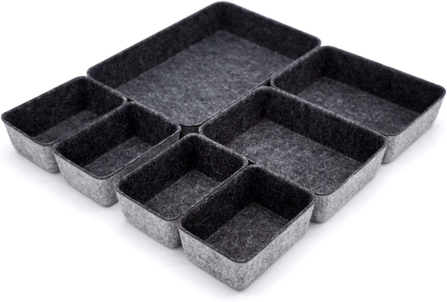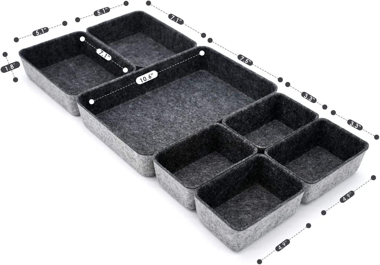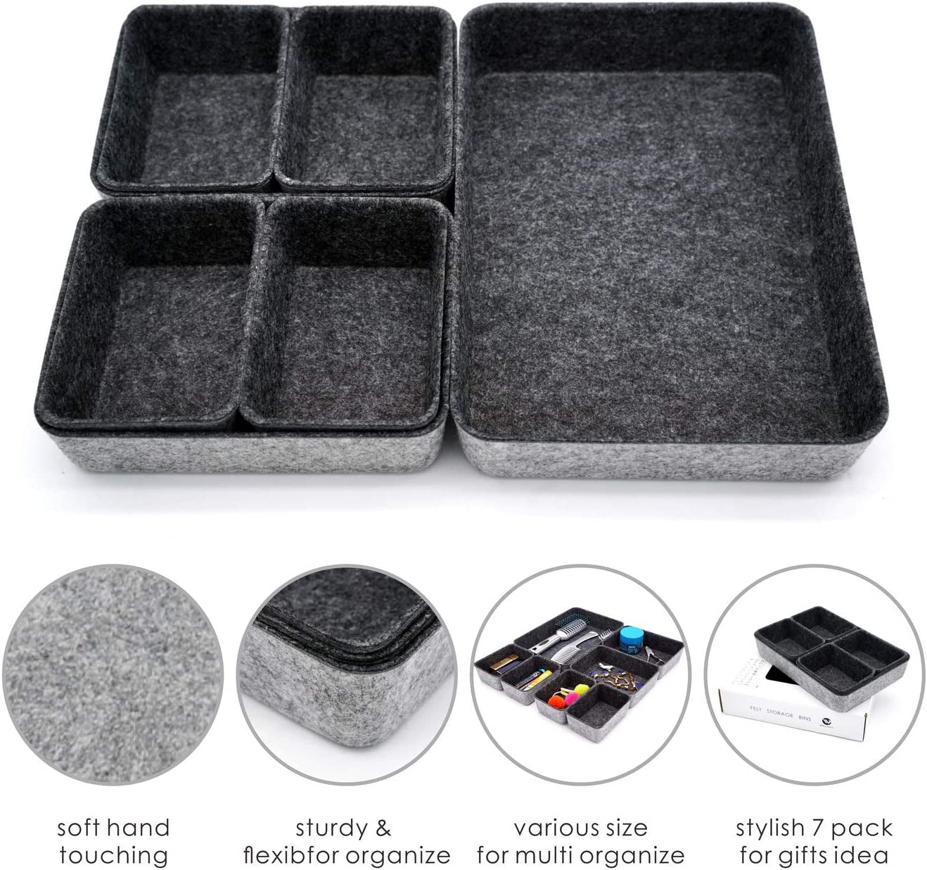 Drawer Organizers Bins Felt Storage Bin Office Organizer Shallow Small Desk Organizer Trays Draw Dividers Set of 7 (Charcoal)