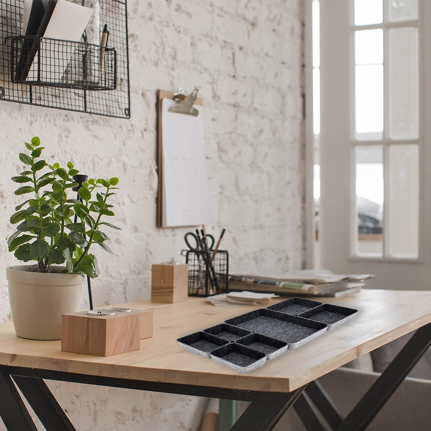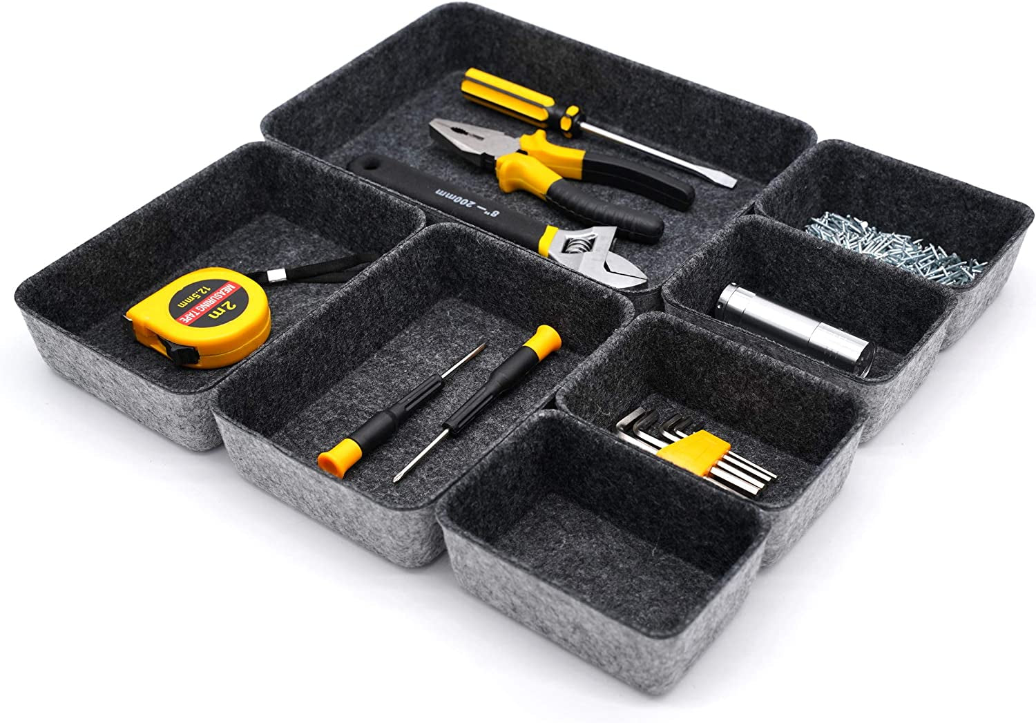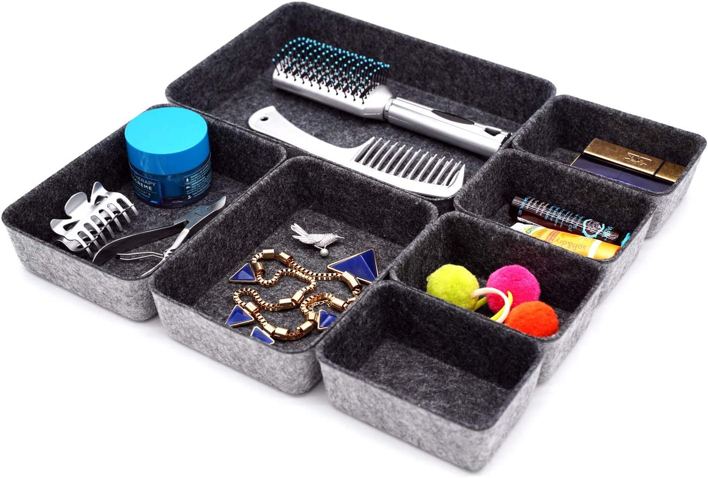 Drawer Organizers Bins Felt Storage Bin Office Organizer Shallow Small Desk Organizer Trays Draw Dividers Set of 7 (Charcoal)