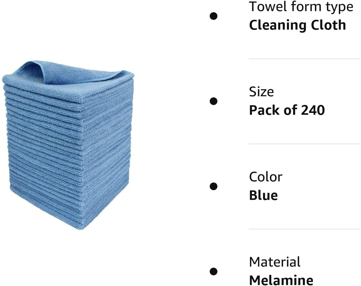 Professional Commercial Grade Microfiber Cleaning Cloth 240 Value Pack 16 X 16 Inch (Extra Thick, Extra Absorbant, Cleaning Power and Dry Fast, Lint Free, 300GSM) (240, Blue)